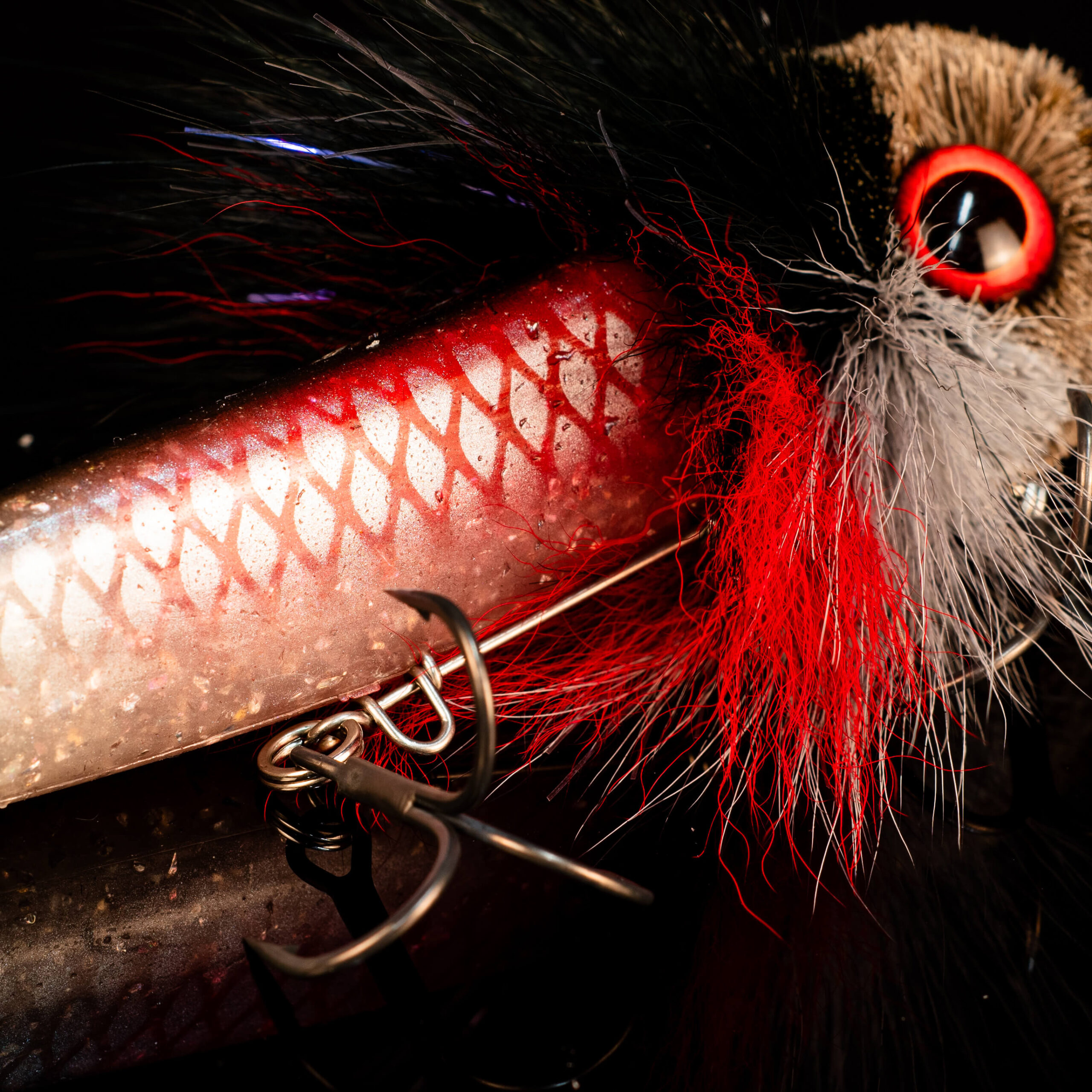 The head is entirely made with Bucktail, a natural material with his unique characteristics, impossible to be imitated by any other synthetic material. The softness and length of the fibers, combined with the particular mounting process, gives the lure that typical floating and natural look that makes it irresistible to any water predators. Each head is entirely handmade because this process is impossible to be mechanized in any way, and makes every single Blackbug a unique piece.